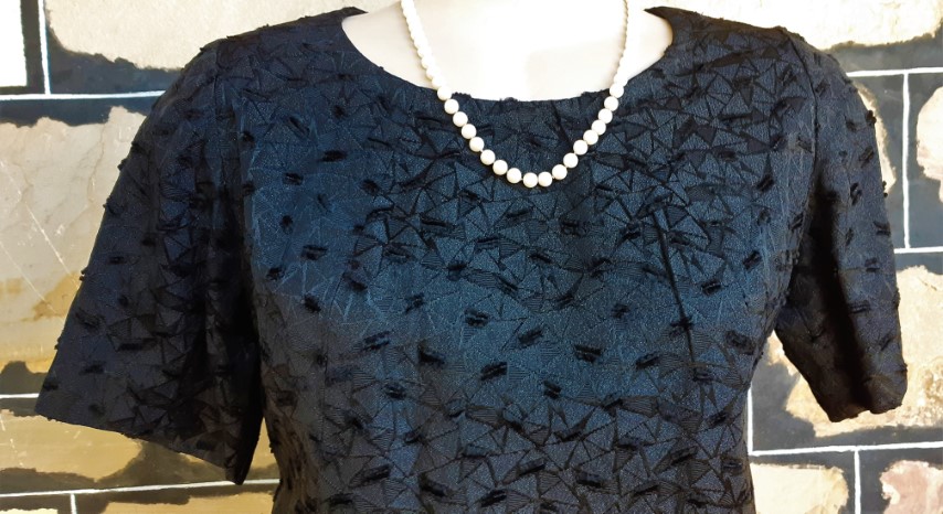 1960’s Cocktail Dress, Black, shift, handmade, polyester, size 12