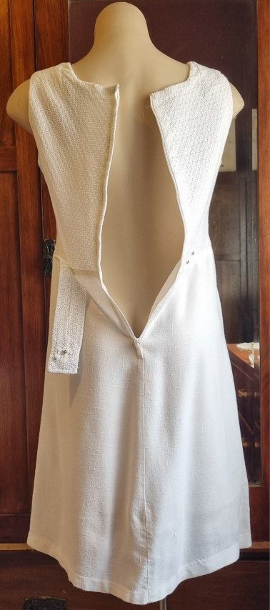 1960s Shift Dress, white, linen, by ‘Vouge Paris Original’, size 10-12