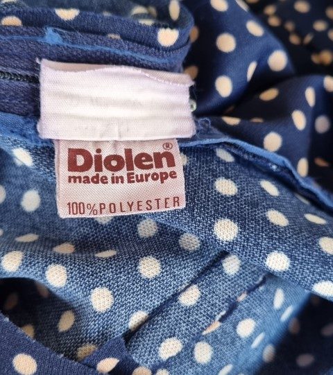 1970’s A-Line dress, polyester, Navy print, by ‘Diolen of Europe’, size 12
