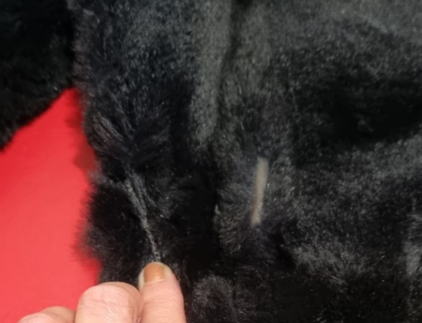 There is however the most minute flaw at the front right side. See the photos, it is on the waistline, but, truthfully, I didn’t even notice it until I laid it down on the table to measure it! The belt is missing too, which I would say covered up this flaw originally. The buttons are showing some wear too, they are pealing, but, again, hardly detract from the beauty of this gorgeous coat, but, for these reasons, I have lowered the price to compensate.
