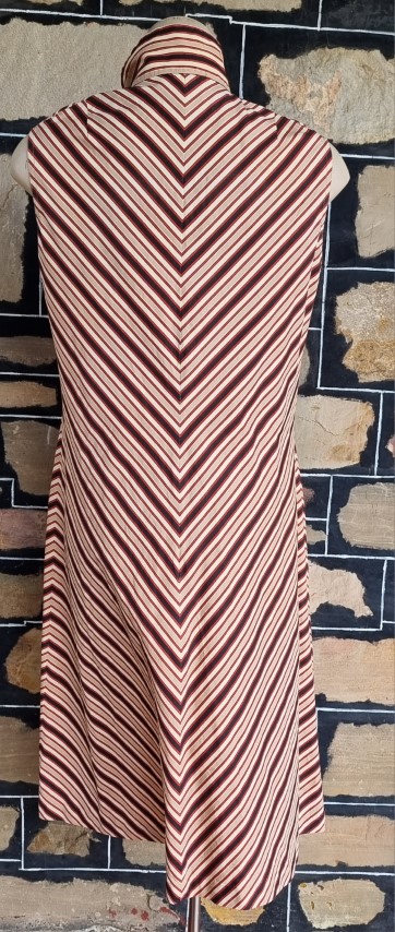 I have added a cool photo in the gallery to show you how you could accessorize it. With a 70’s Baker boy hat, stretchy maroon belt, some cream beads, black court shoes, and a lovely raffia handbag.