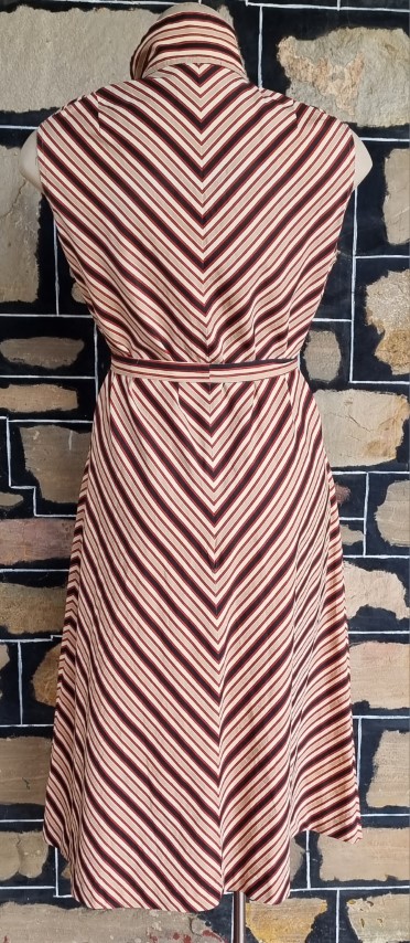 1970s Shirtmaker Dress, by ‘Sportscraft’, caramel/red/black, pinstriped, cotton, size 14