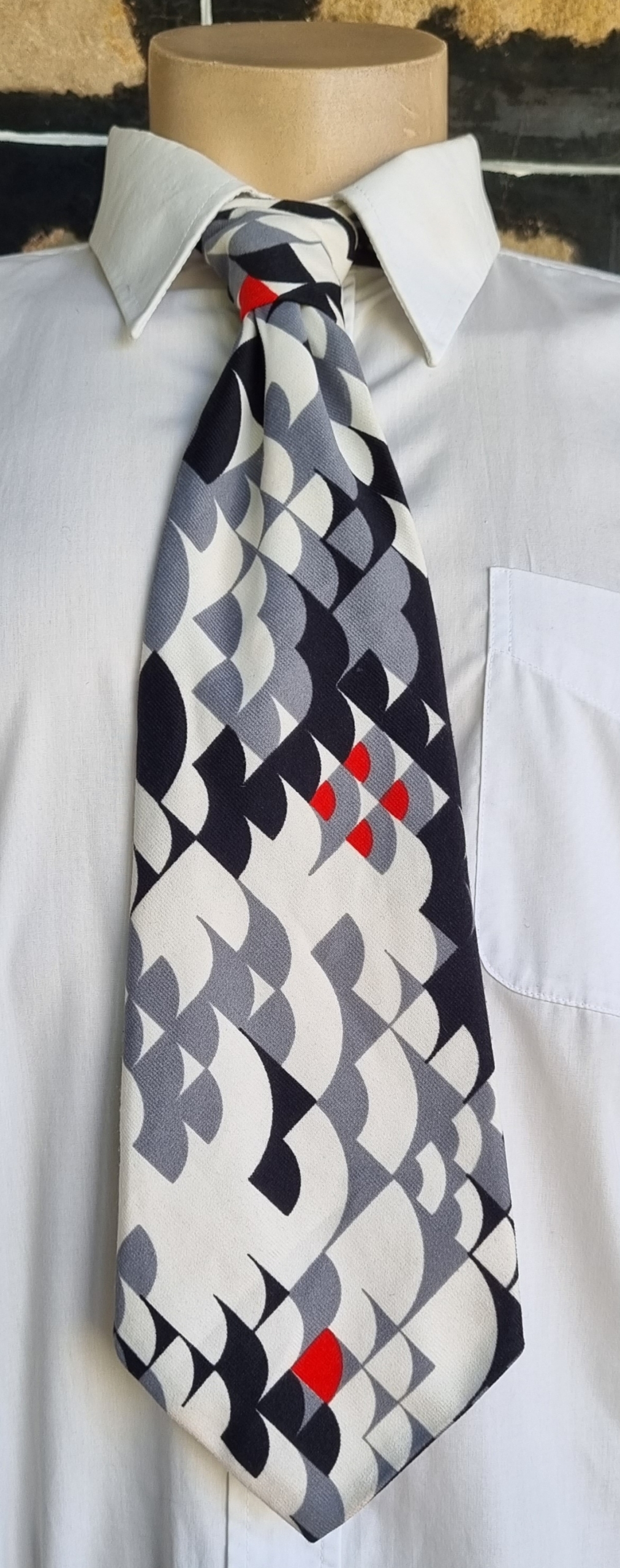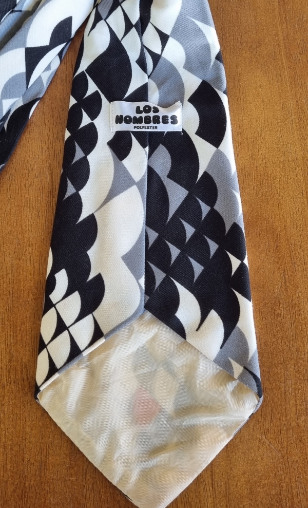 1970’s wide tie, polyester, by ‘Los Hombres’, grey/cream/black/red