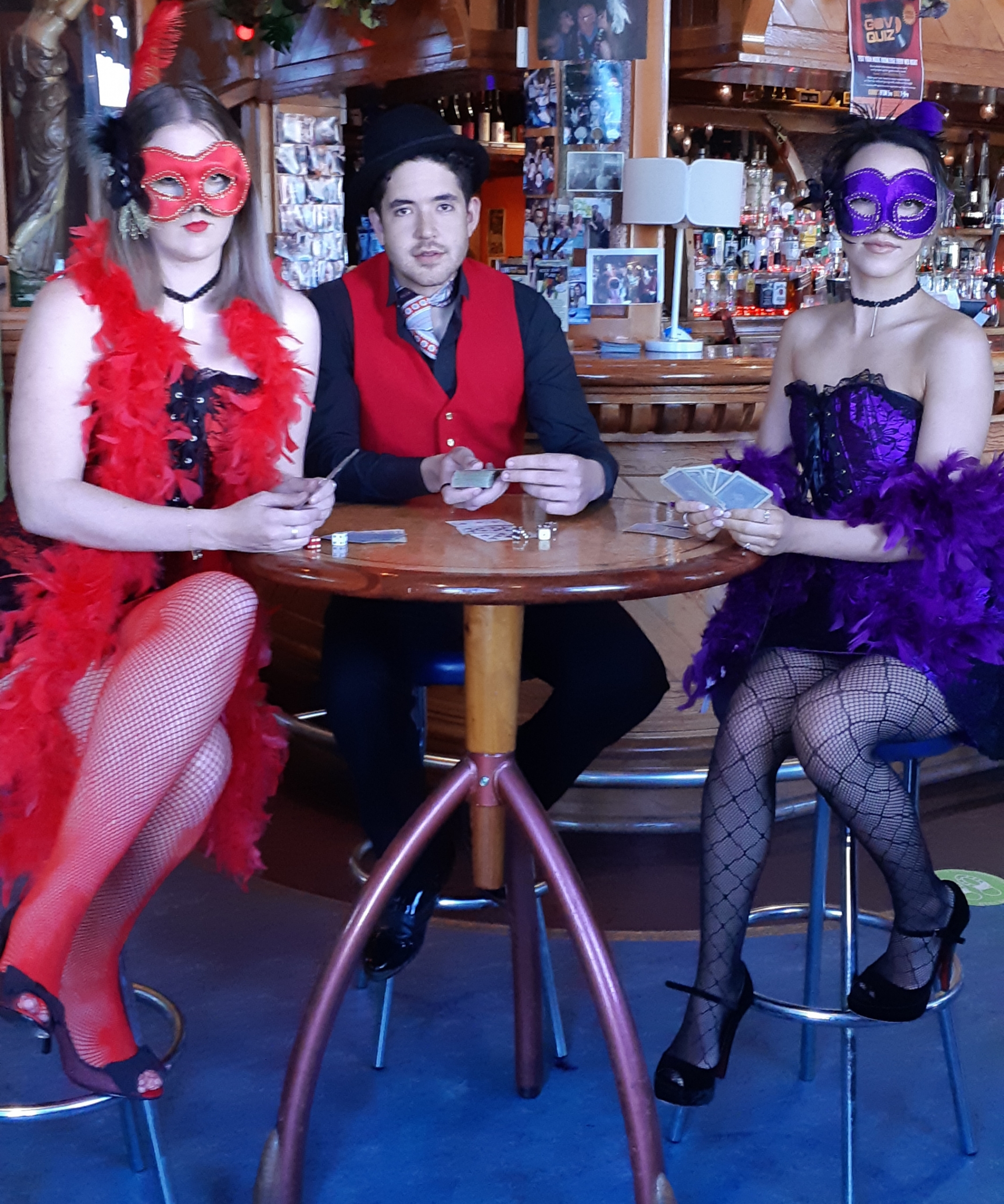 Only worn twice for dress up parties (we were a costume hire store) on our model for this photo shoot we did in the Governor Hindmarsh Hotel and on the lovely ladies in the gallery photo. They are perfect for a Moulin Rouge party or event.