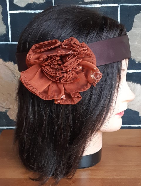 Charleston Costume, dress, headband & bag, cinnamon/ brown, polyester, hand made.