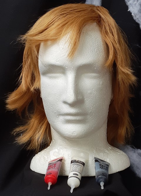 The wig is an original real hair vintage 70’s one. We have shampooed and conditioned him, he is a little disheveled which we think makes the perfect wig for this Heath Ledger Joker character.