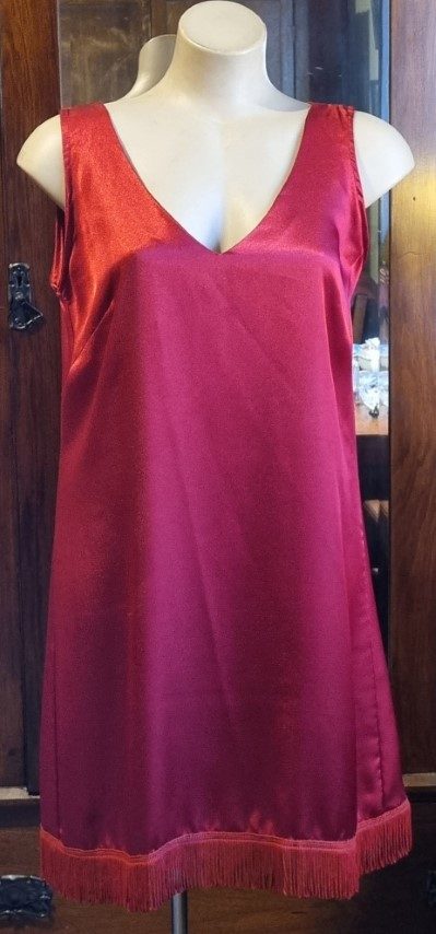 Flapper Dress, Satin Polyester, Cherry Red, Handmade, size S-M