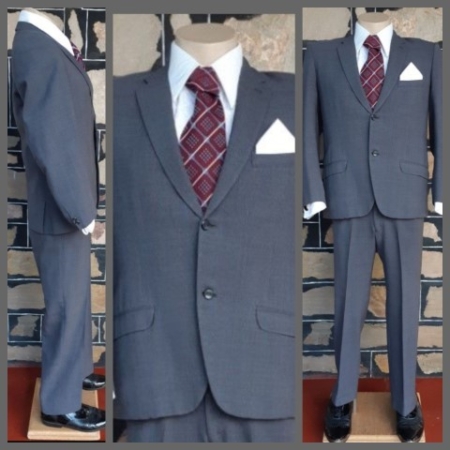 Suit, 1950’s, 2 piece, grey, checked, wool, by ‘Don Tailors of Adelaide’ size S-30″