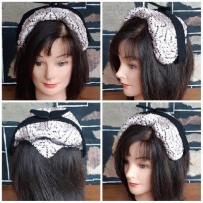 1940’s, Crescent Hat, Lavender/black, Raffia, nylon/lace by ‘Holstens of Adelaide’