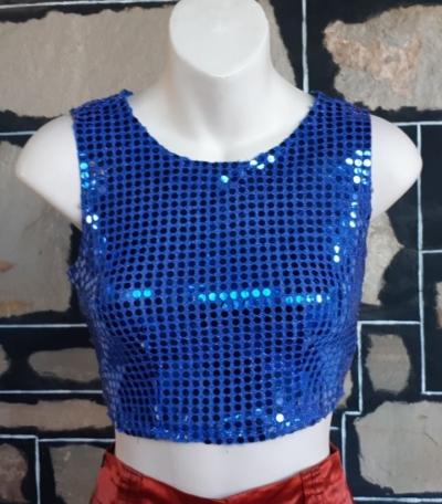 Crop Top, Sequined, electric blue, by ‘Knockout’, size XS