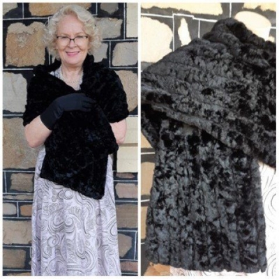 Vintage Wrap, black, faux fur, by ‘Raemink’, USA, polyester