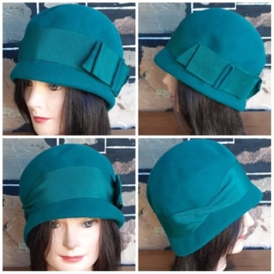 1950’s Cloche Hat, green, cotton felt, by ‘Sanba hat’s of England’ size 52cm