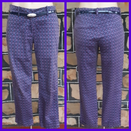 Hipster pants, 3/4 length, cotton/elastane, blue printed, by ‘Skinny’ size 10