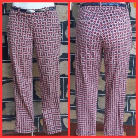 Hipster Pants, 3/4 length, cotton/elastin, blue printed, by ‘Skinny’ .