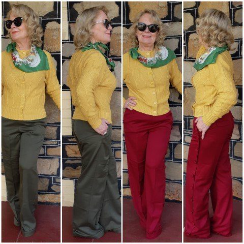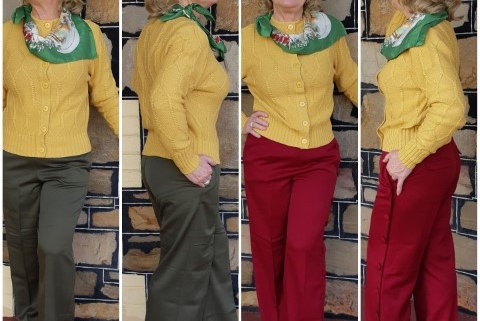 Lovely Carolyn snapped up Banned Apparel pants and cardigan, with a vintage scarf to complete the look!