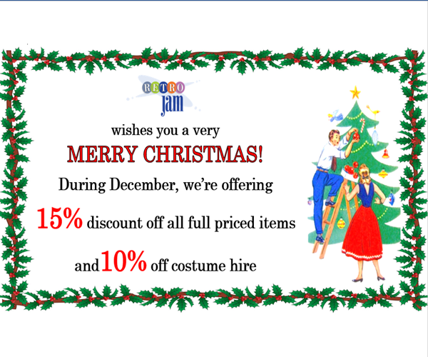 All costume Vintage and Retro Costume hire will be discounted by 10% until Dec 31st…..get your Christmas dress up party happening.
