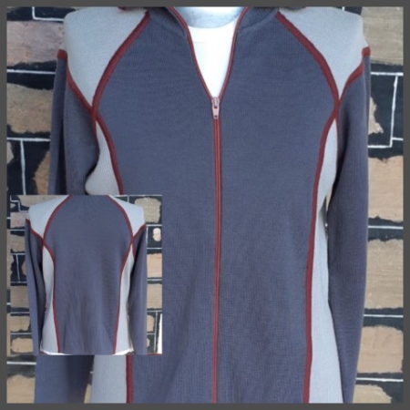 Cardigan, Zipped Front, acrylic/ wool, Grey/maroon, by ‘White Stag’ USA, size L