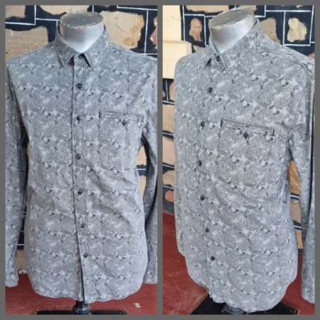 Product Condition: UsedPaisley Print Cotton Shirt, black, by ‘JA Signature Collection, size L short.