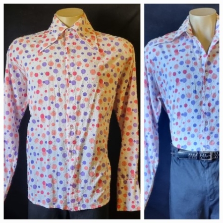 Product Condition: Used1960’s Men’s Shirt, Cotton, lavender/white print, by ‘Sefton World’, size L-XL