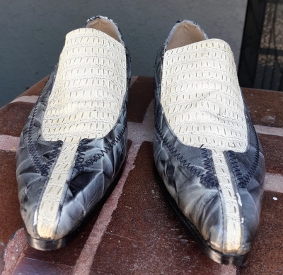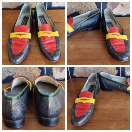 Product Condition: Used1950’s Loafers, Leather snakeskin, Navy/red/yellow, by ‘Taranto Internationale’, size 9.5