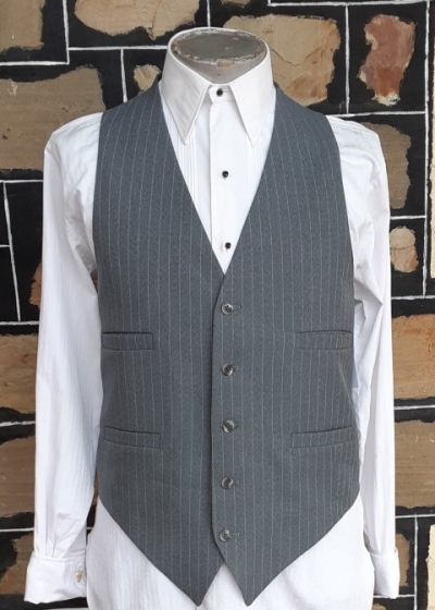 Product Condition: UsedWaistcoat, Black Pinstriped, polyester, by ‘Queensland Costume Supplies’ size M-L
