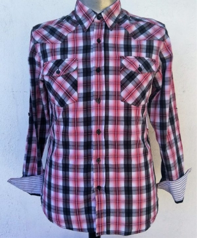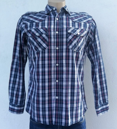 Western Shirt, by ‘Levis’, green/red/blue checked, stretch cotton, size M