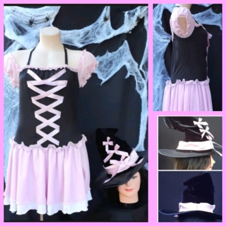 Witch Costume, pink/black, by ‘Elevate’, includes dress and hat, size 10-12