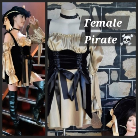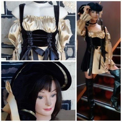 Pirate Girl, dress, choker & Hat, black/gold, by ‘Elevate’, size 10