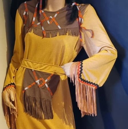 Indigenous Native American Costume, Dress with Wig, Gold, polyester, by ‘Costume Collection’, size 12