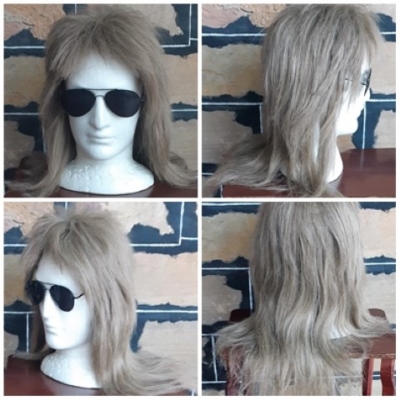 Mullet wig, black, synthetic, ex-display, with New Mirrored Sunglasses by ‘R.B Space’