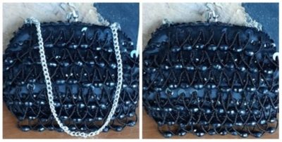 Product Condition: Used1960’s Handbag, Black, Raffia Crochet and Plastic Beads, small