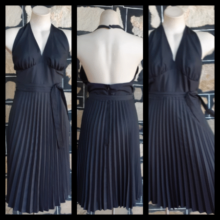 1950’s, Halter Neck Dress, Black, sun ray pleat, polyester, from Europe, size 10