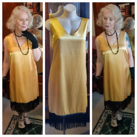 Flapper Dress, Satin Polyester, Mustard, Handmade, size L