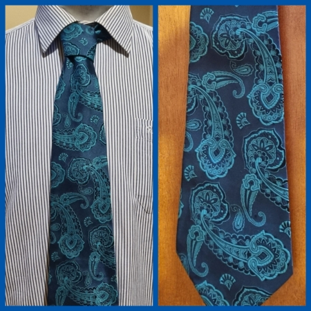 1970’s Paisley tie, Blue tones, polyester, by ‘Austico, club 300’