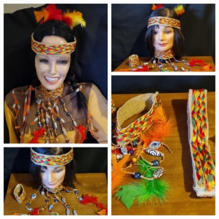 Indigenous Native American Headpiece, Feathers & beaded cuff & necklace, by’ Sweidas Costumes’