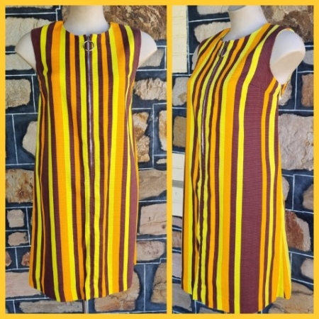 1960’s, Zip Front shift dress, cotton, orange striped, by ‘Susie Parker of Sydney’, size 10-12