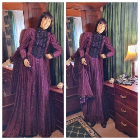 Victorian Gown, Reproduction, Handmade in USA, Maroon lace & satin underskirt, size 10