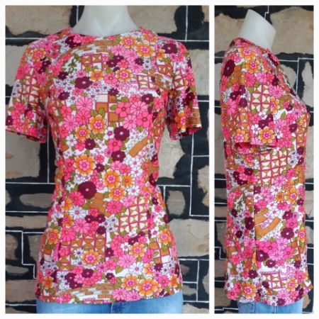 Product Condition: Used1960’s Boat Neck Top, silk, pink, handmade, size M