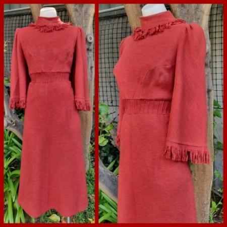 Product Condition: Used1970’s Crochet Vest with fringing, Cinnamon, Acrylic, size S, handmade.