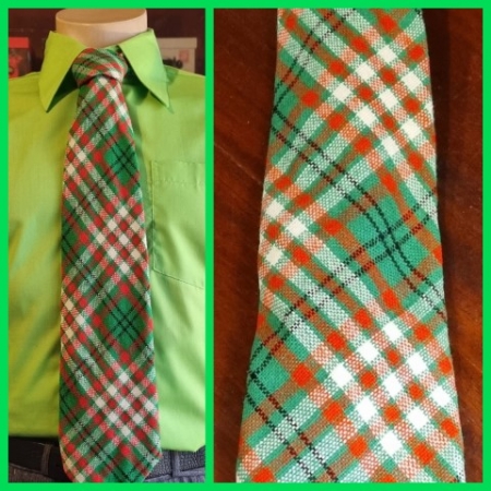 Vintage Tie, Wool, Lime green tartan, by ‘Hollygreen’ 1970’s