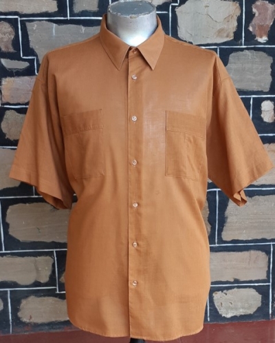 Product Condition: UsedMen’s Ruffle Front Shirt, brown, poly/cotton, by ‘Fun Costumes’, size XL-2XL.