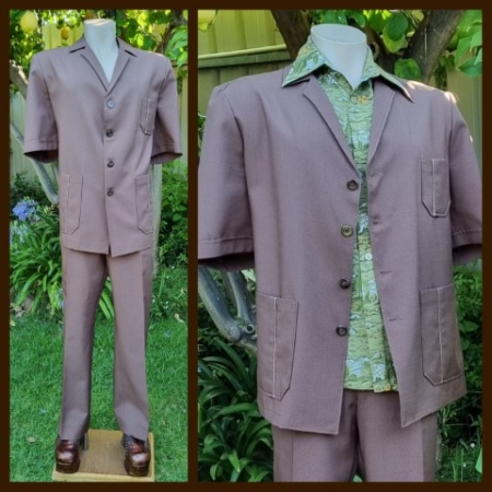 1970s-inspired, 3 piece, Disco Suit and bow tie, Chocolate brown, Polyester, by ‘Fun Costumes’, size XL.