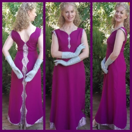 1970’s Gown, Princess Line, purple, polyester, hand made, size 8- 10