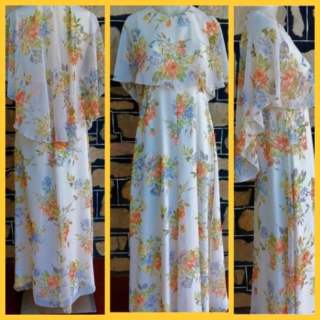 1970’s Maxi dress, autumnal colors, Polyester, by ‘Dorsam’, size 8-10