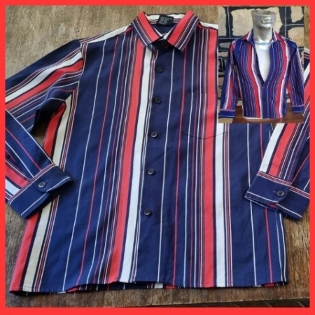 1970’s Boys Disco Shirt, Red/navy/white striped, by ‘Ambassador’, polyester, size 8-10