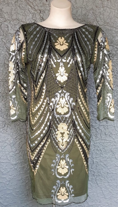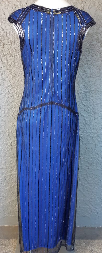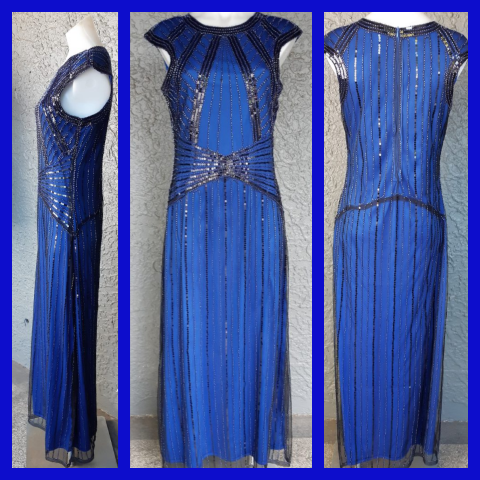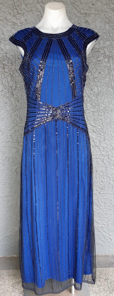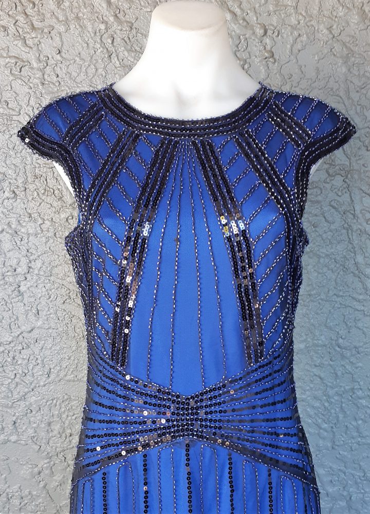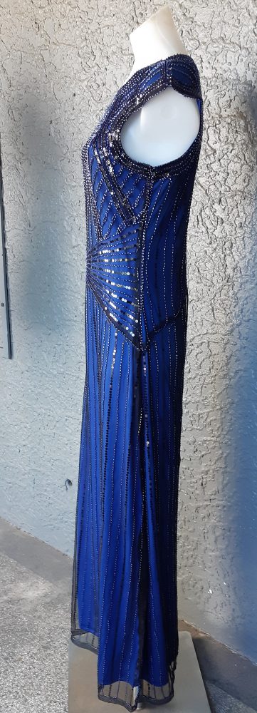 Stunning electric blue 20’s Gatsby inspired evening gown.