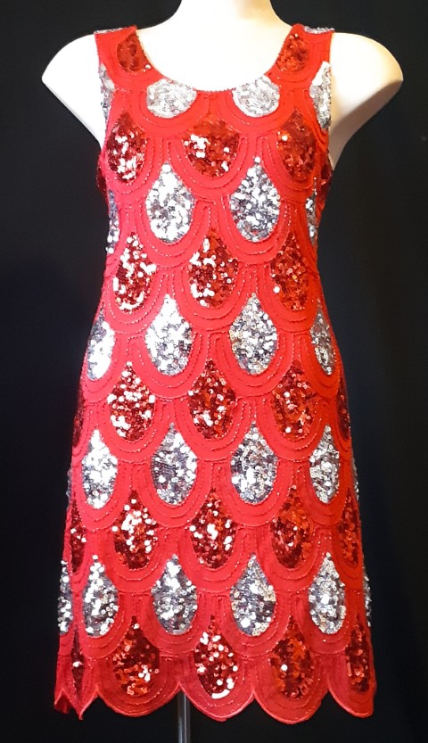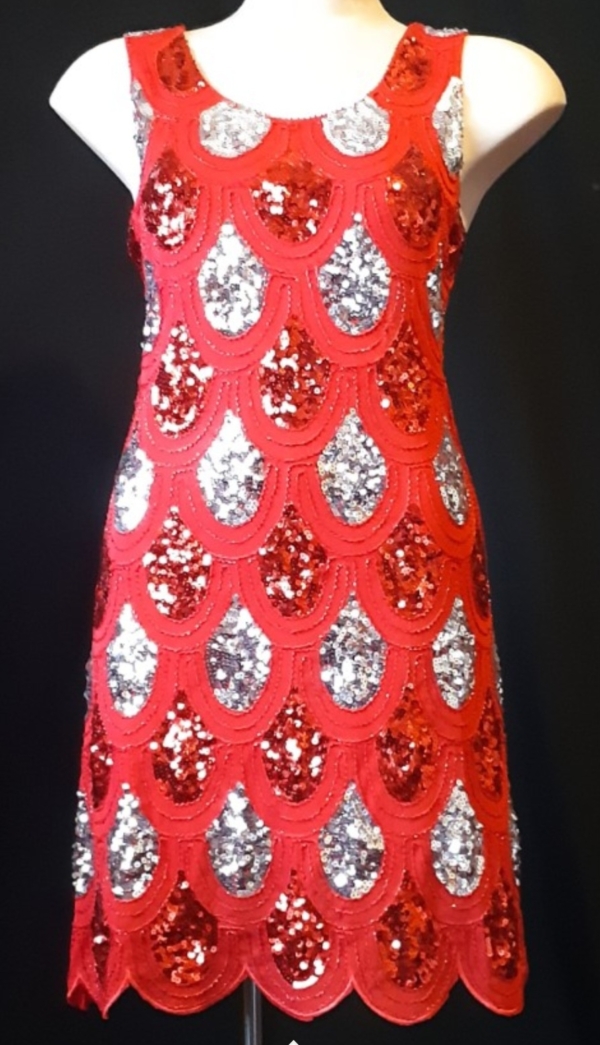 She looks every bit a Gatsby party dress with our cropped black faux fur jacket, not included.