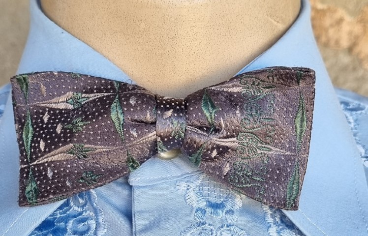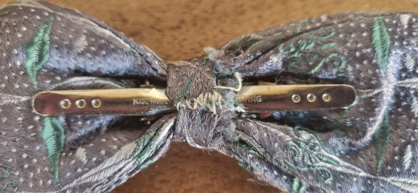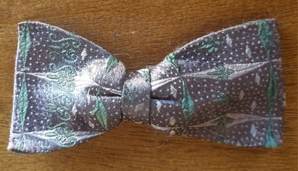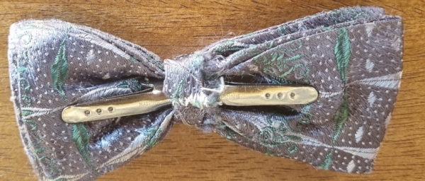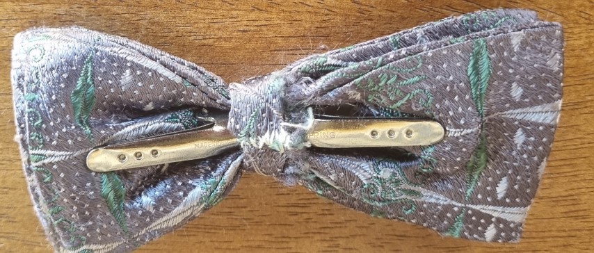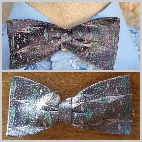 1940’s Bow Tie, Grey print, silk, bow spring, Made in Australia.