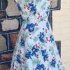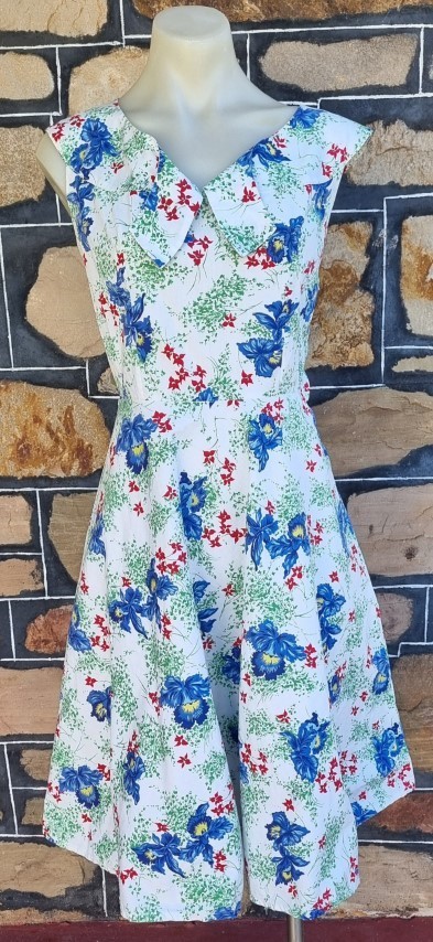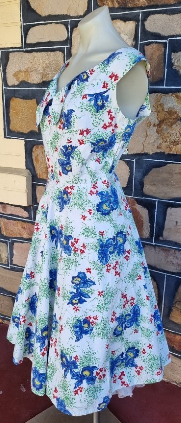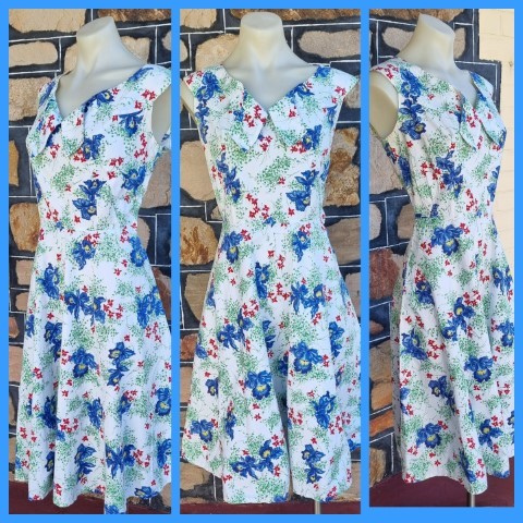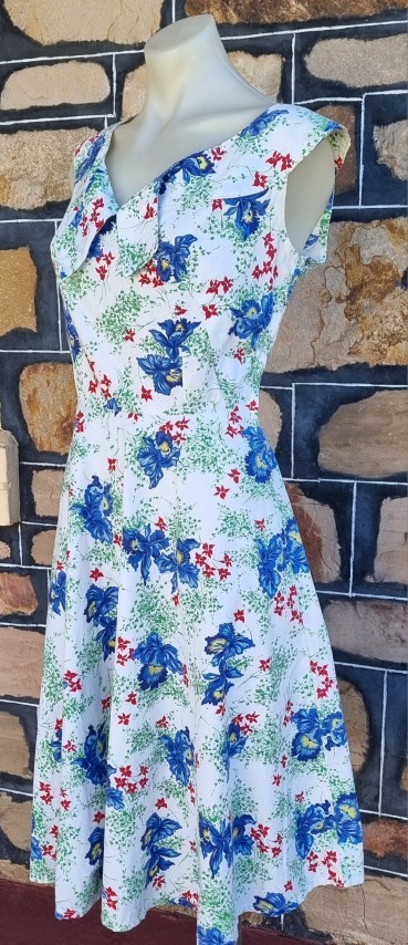 1940’s Day Dress, handmade, white floral print, cotton, size S