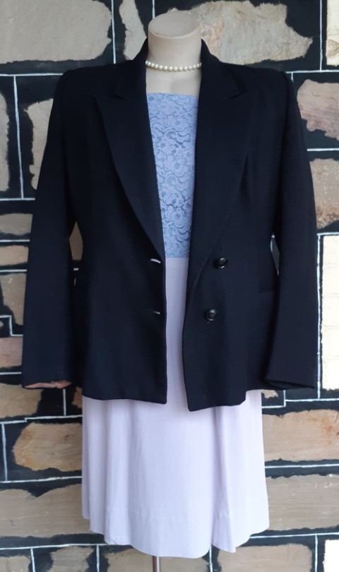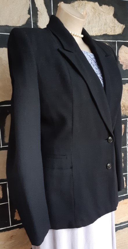 1940’s Jacket, wool/crepe, black by ‘Michaelson’ size 12, perhaps a 14, check your measurements.
